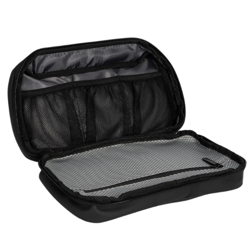 La Mini Bagz Montblanc,  es un estuche organizador y practico, ideal tanto para tus viajes como para el uso diario. Su diseño compacto ofrece un amplio espacio interior donde puedes mantener ordenados tus artículos de higiene, productos de cuidado personal o accesorios tecnológicos como cargadores y cables. Está confeccionado con materiales impermeables al agua, brindando protección frente a derrames y salpicaduras mientras mantiene todo al alcance. Sus compartimentos internos están pensados para maximizar el orden, ya sea dentro de tu mochila, maleta o escritorio.